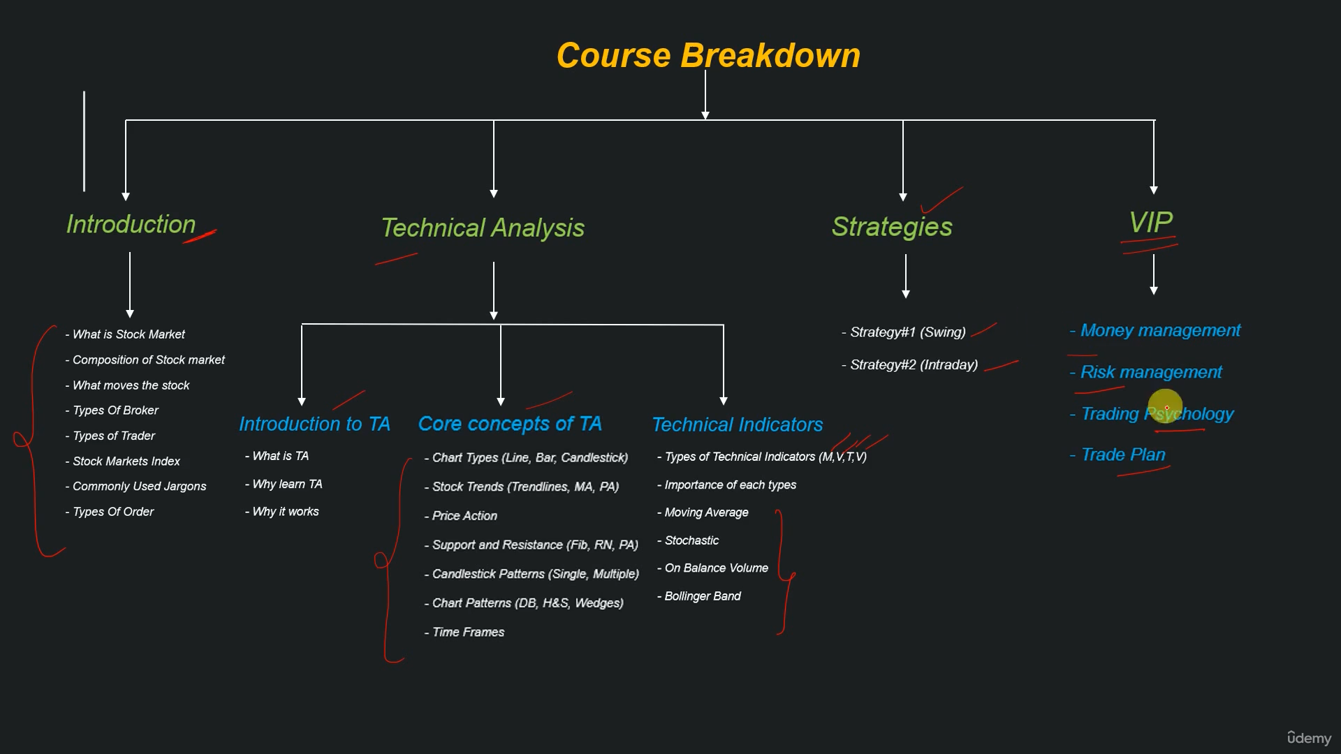 In terms of course content, we will cover essential stock trading concepts. The best part is that we will start from the ground up, ensuring that even those with zero knowledge of stock trading can easily follow along and understand the material.